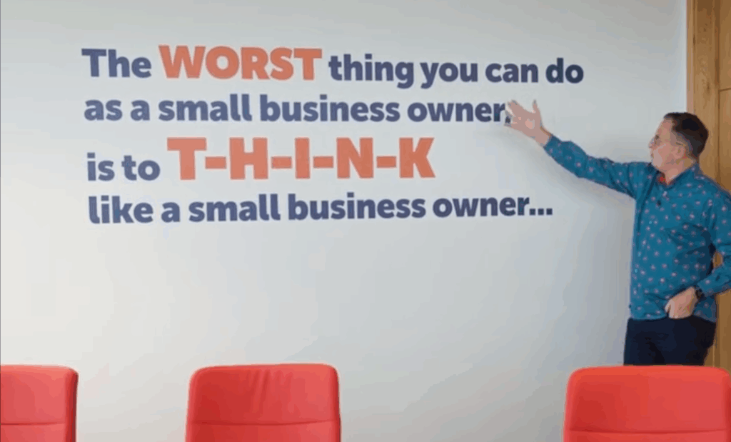 In the headquarters of his business community, the Entrepreneurs Circle near Solihull, Birmingham, there is a phrase painted on the wall that stops you in your tracks: “The worst thing you can do as a small business owner is to T-H-I-N-K like a small business owner…”